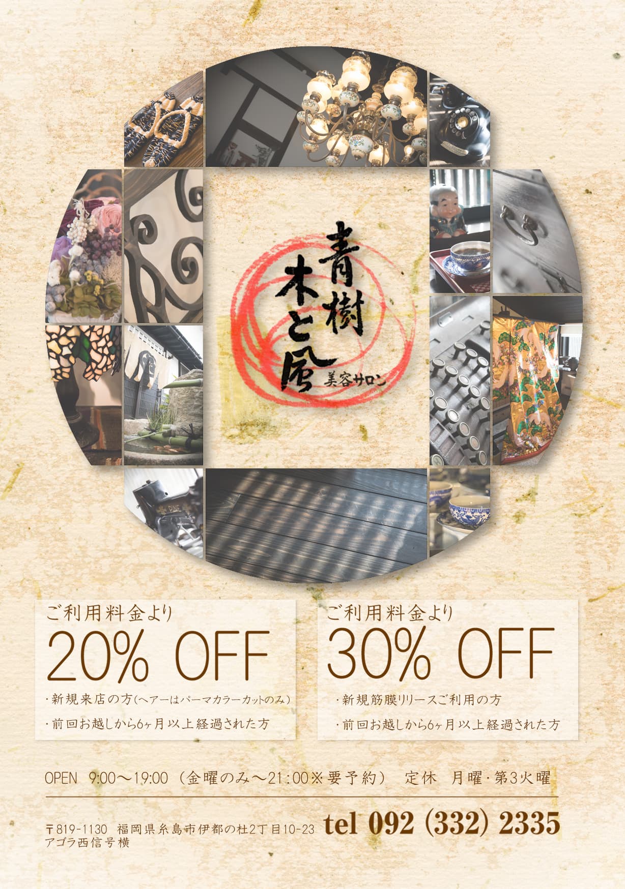 ※ご来店時、スタッフに「スマホ画面」か「プリントアウト」してお見せください。該当メニューに応じてお値引きさせていただきます。